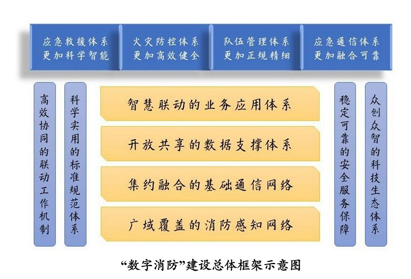 ——數(shù)字化消防工作格局基本形成。源頭感知數(shù)據(jù)采集體系基本構(gòu)建,行業(yè)信息數(shù)據(jù)同步共享率達(dá)到100%?;A(chǔ)通信網(wǎng)絡(luò)更加集約融合,融合通信系統(tǒng)全面建成,“全天候、全地域、全災(zāi)種”應(yīng)急通信保障能力顯著增強(qiáng),斷電、斷路、斷網(wǎng)條件下應(yīng)急通信保障保持100%通達(dá)率。應(yīng)急救援指揮“一張圖”建設(shè)、火災(zāi)風(fēng)險(xiǎn)分析預(yù)警應(yīng)用建設(shè)基本完成,科技創(chuàng)新對(duì)消防工作的支撐力度進(jìn)一步提升。