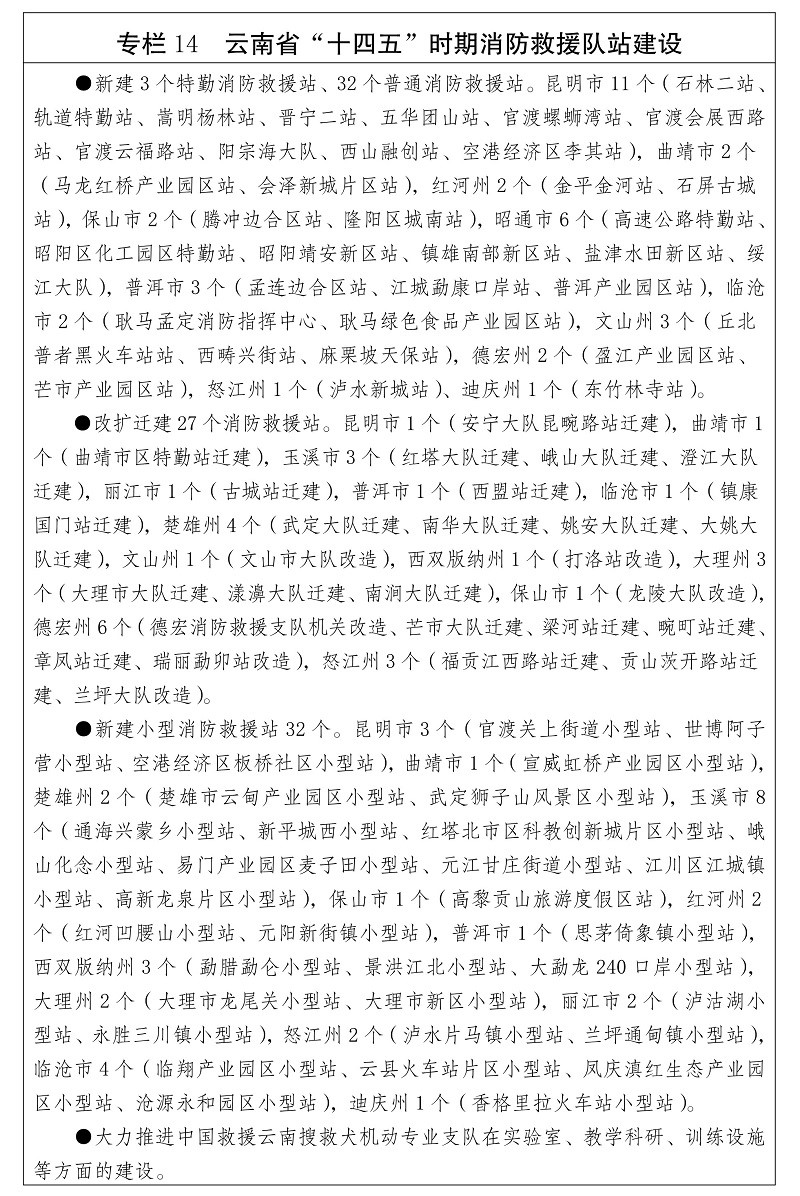 云南省“十四五”消防救援事業(yè)發(fā)展規(guī)劃的通知
