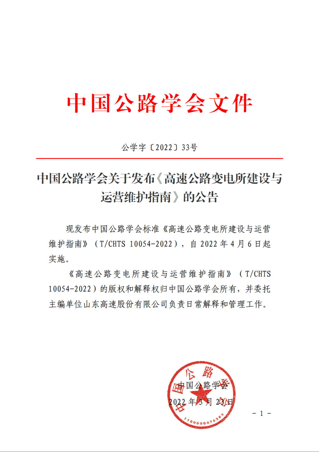 《高速公路變電所建設(shè)與運(yùn)營維護(hù)指南》公學(xué)字【2022】33號 獲中國公路學(xué)會批準(zhǔn)發(fā)布