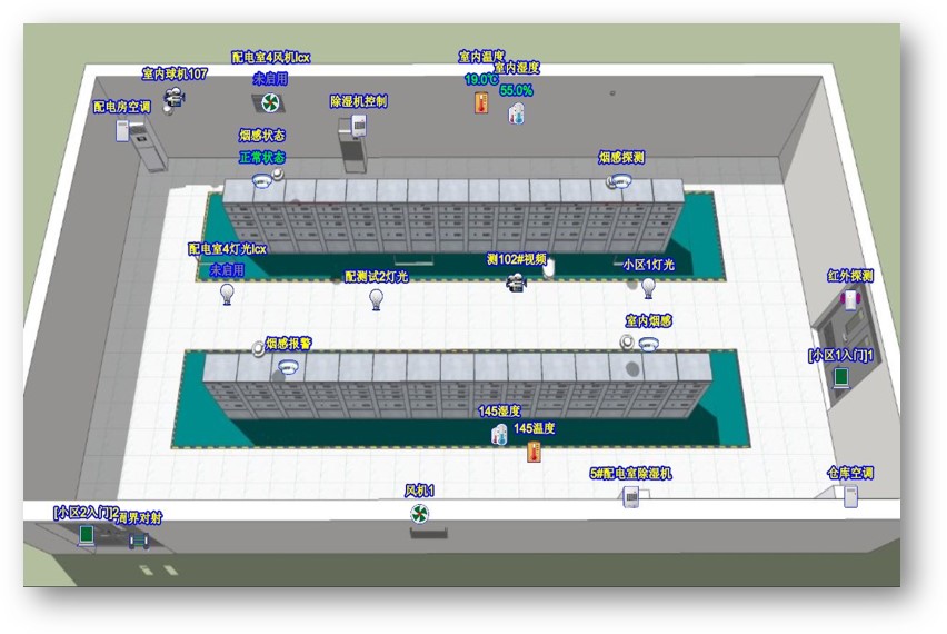 一般配電室的動態(tài)環(huán)境監(jiān)控系統(tǒng)主要對配電房的供配電、環(huán)境、消防、安全、IT系統(tǒng)進行綜合監(jiān)控;監(jiān)控對象包括:市電、UPS、空調、門禁、視頻、煙氣、風機、低壓柜、溫濕度、防火等;監(jiān)控對象的所有實時監(jiān)控數(shù)據(jù)通常通過數(shù)據(jù)采集主機集成,構建數(shù)據(jù)瀏覽、設備控制、異常情況報警等智能監(jiān)控系統(tǒng)。